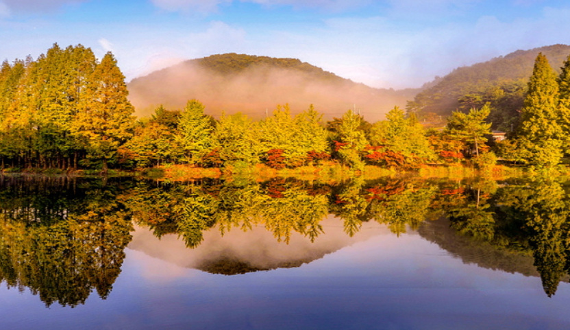 가을에는 저수지 주변을 둘러싼 메타세쿼이아 나무들이 붉게 물들어 장관을 이루며, 잔잔한 수면에 비친 단풍의 모습은 마치 한 폭의 그림과 같습니다.
