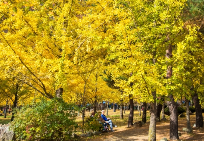 숲 안을 걸으며 은행나무에서 떨어진 노란 잎이 쌓인 길을 따라 산책할 수 있으며, 평온하고 아늑한 분위기 속에서 여유롭게 가을 정취를 즐길 수 있습니다. 단풍철에는 관광객이 많으니 오전 일찍 방문하시는 것을 추천드립니다. 주소: 강원도 홍천군 내면 은행나무숲길 99