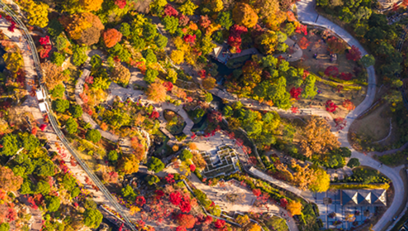 주요 산책로와 모노레일이 설치되어 있어 숲 전체를 편안하게 둘러볼 수 있으며, 모노레일을 타고 정상에서 내려다보는 단풍 전경은 장관을 이룹니다.
