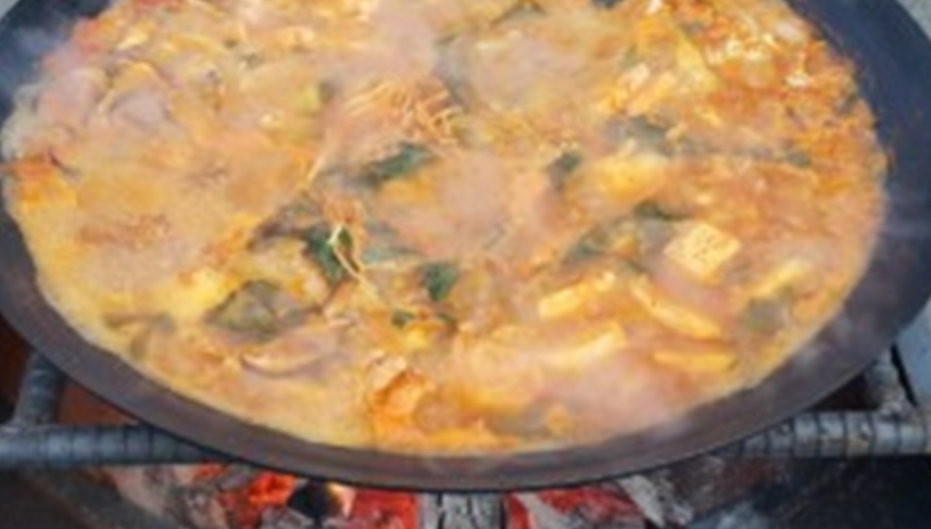 이곳은 방송에도 출연한 경력이 있는 가평의 유명한 맛집입니다. 닭볶음탕은 장작불 위에 올라간 커다란 솥뚜껑에서 조리되어 더욱 특별합니다.
