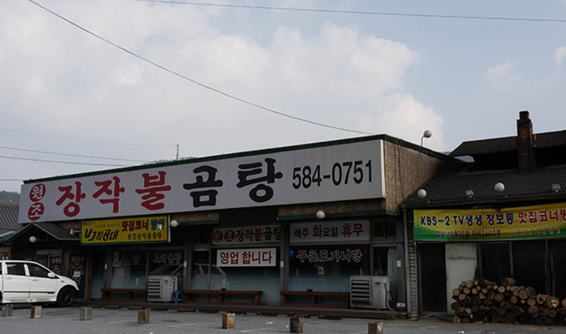원조장작불곰탕은 가평군 청평로 도로가에 위치해 있어 지나가다 보면 어마어마하게 쌓여있는 장작더미와 큰 간판이 눈에 띕니다. 이곳은 가마솥에서 장작불로 푹 고아낸 진한 곰탕을 맛볼 수 있는 곳입니다.