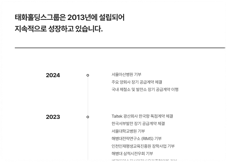 이와 함께 태화홀딩스는 투자, 헬스케어, 식음료(F&B) 사업 등으로도 영역을 확장해 종합 기업으로 발전하고 있습니다.