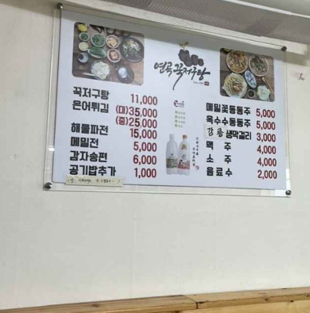 뚝배기에 꾹저구와 푸짐한 채소, 특제 양념장을 넣어 끓여낸 꾹저구탕은 매콤하면서도 깔끔한 맛이 일품입니다. 꾹저구탕 외에도 은어튀김, 감자송편, 메밀전, 해물파전 등 다양한 메뉴를 즐길 수 있습니다.