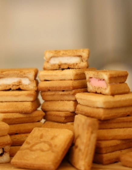 프랑스 고메버터로 구워낸 쿠키 사이에 크림치즈와 수제 솔트카라멜을 듬뿍 채운 강릉샌드는 깊은 풍미와 부드러운 식감을 자랑합니다. 특히 '딸기맛 샌드'는 강릉샌드 본점과 초당직영점에서만 맛볼 수 있는 특별한 메뉴입니다.