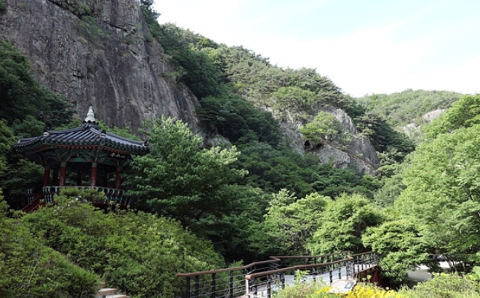 광덕산(선녀봉) 코스 - 3: 병풍폭포에서 옥호봉, 광덕산, 동문, 비룡폭포를 지나 구장군폭포, 매표소로 돌아오는 코스입니다. (12.8km, 5시간 소요) 광덕산의 다양한 풍경을 감상할 수 있는 코스입니다. 비룡폭포의 웅장한 모습도 놓치지 마세요.