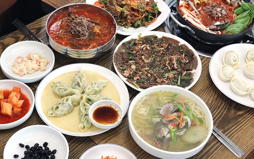 대표 메뉴는 육개장/육개장칼국수, 버섯 칼만두, 육개장 만두전골, 해물 칼국수, 즉석수제만두, 도토리파전, 바지락칼국수 등 다양하게 준비되어 있습니다.