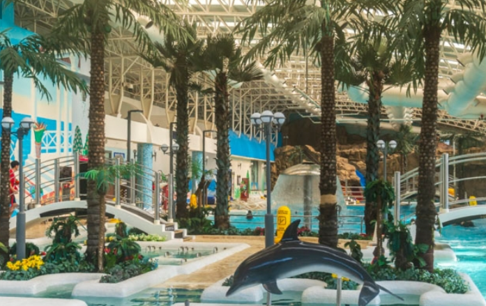 충청북도 단양에 위치한 소노문 단양 오션플레이는 사계절 내내 따뜻한 온수풀에서 물놀이를 즐길 수 있는 실내 워터파크입니다.