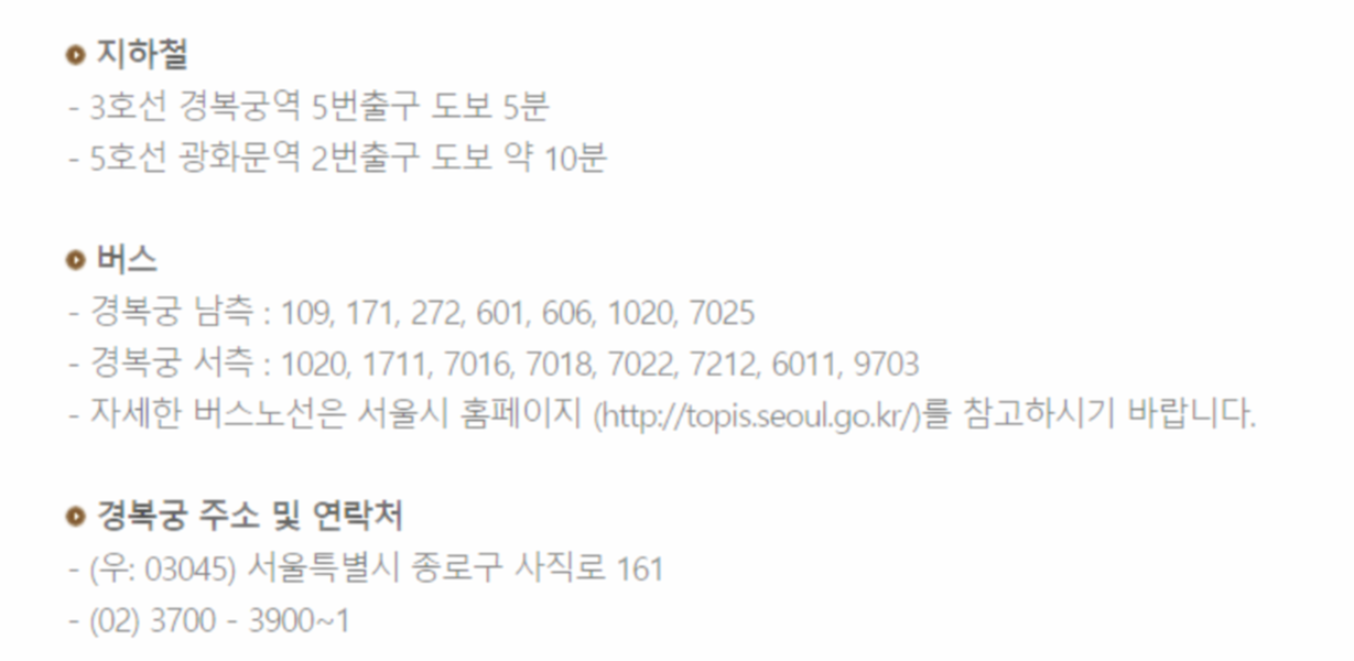 다만 인터넷에 있는 부정확한 정보로 인하여 혼선이 있을 수 있습니다. 경복궁 누리집을 기반으로 정확한 사항을 소개해 드리도록 하겠습니다.