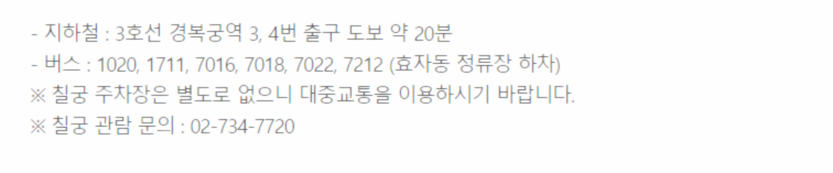 서울특별시 종로구 사직로 161 (경복궁주소) 주차장관리사무소 연락처(02-736-9536)
