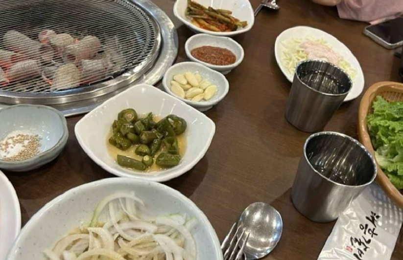 뚝배기에 담아주시는 푸짐한 국물도 함께 제공됩니다. 맛있게 구워진 삼겹살은 장아찌와 김치에 곁들여 먹으면 더욱 맛있게 즐길 수 있습니다.
