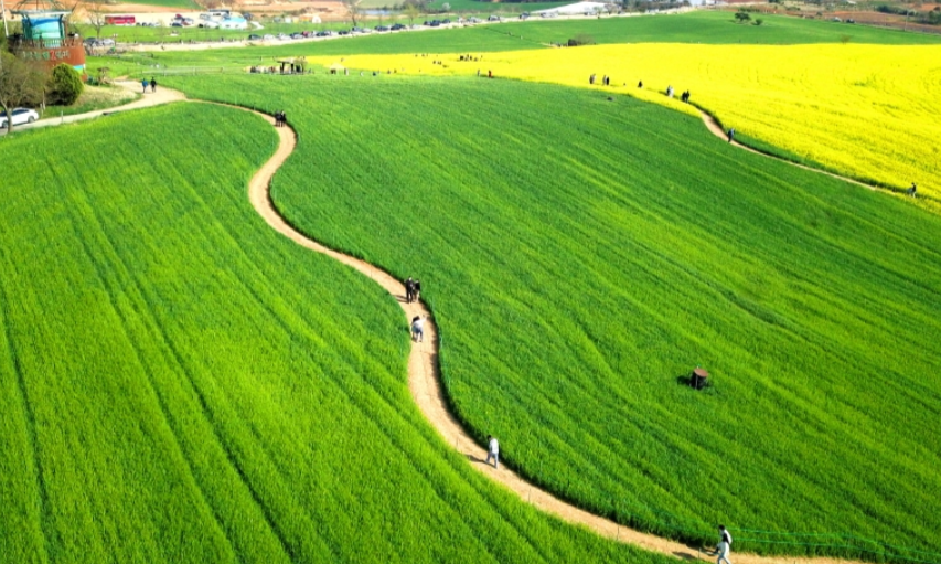 보리밭 사이로 조성된 산책로를 따라 걸으며 초록의 바다 속을 거니는 이 체험은 도심에서는 느낄 수 없는 특별한 평온함을 선사합니다. 바람에 흔들리는 보리의 사각거리는 소리와 햇살에 반사되어 반짝이는 들판의 풍경은 그야말로 자연이 주는 선물입니다.