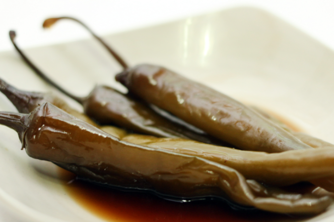 고추를 손질한 뒤 식초 2큰술을 섞은 찬물에 5분 정도 담가두면 아린 맛과 이물질이 제거됩니다. 그런 다음 깨끗한 물로 헹구고 체에 받쳐 물기를 완전히 말립니다. 냄비에 간장과 물을 넣고 팔팔 끓이다가 불을 약하게 줄인 뒤 설탕을 넣어 완전히 녹입니다. 설탕이 녹는 과정이 간의 균형을 좌우하므로 중요한 단계입니다. 불을 끄고 식초, 매실청, 미림을 넣고 고루 섞습니다. 식초는 반드시 불을 끈 후 넣어야 신맛이 살아 있습니다.