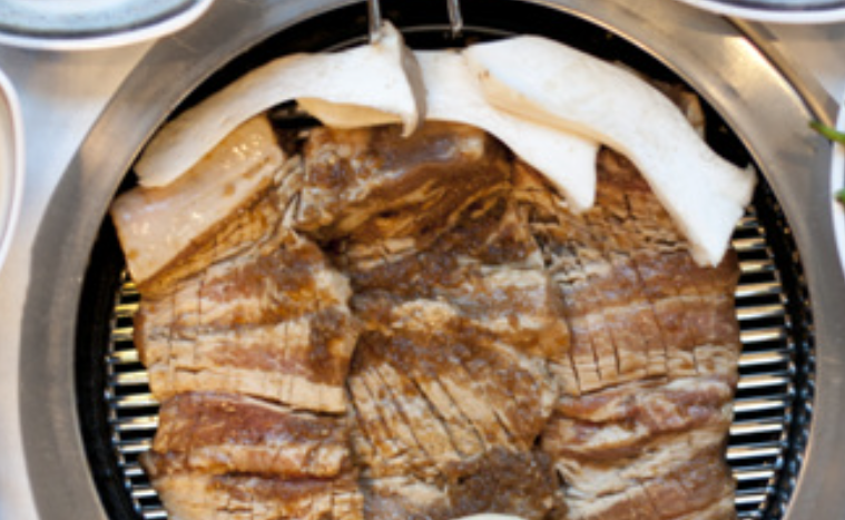 상다리가 휘어질 정도로 푸짐한 반찬과 신선한 삼겹살이 눈길을 사로잡습니다. 특히 대패 삼겹살은 익는 시간이 짧아 빠르게 즐길 수 있으며, 함께 구워지는 부추는 삼겹살의 풍미를 더욱 살려줍니다.