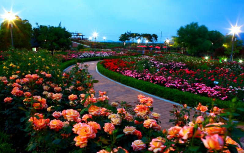 곡성장미축제는 유럽 풍경 속에서 펼쳐지며 75,000㎡에 달하는 대형 장미 정원은 유럽산 희귀 장미와 사계절 초화 수 만 본을 식재하여 화려한 볼거리를 제공합니다.