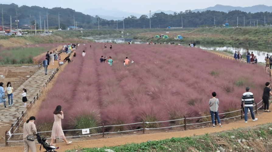 공주 유구천 핑크뮬리는 충남 공주시 유구읍 유구천변에 조성된 핑크뮬리 정원입니다. 가을이면 솜사탕처럼 부드러운 핑크빛 물결이 펼쳐져 아름다운 풍경을 자랑합니다.