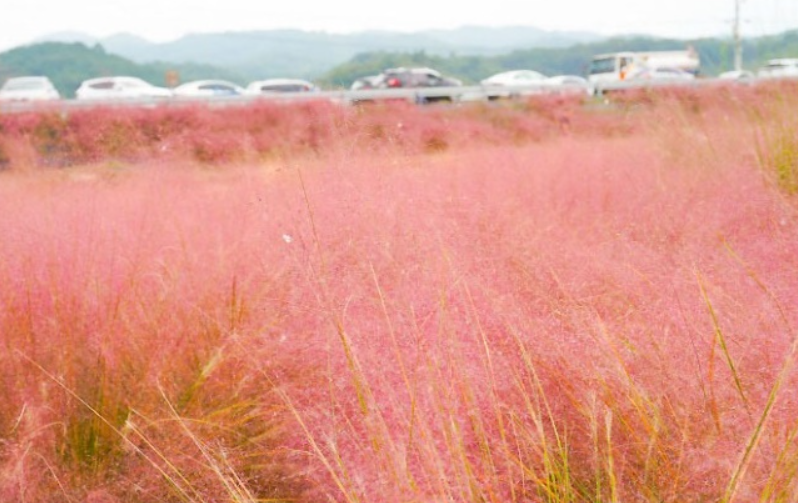 9월부터 11월까지 핑크뮬리가 만개하여 아름다운 풍경을 선사합니다. 핑크뮬리 정원을 따라 조성된 산책로는 여유롭게 걷거나 자전거를 타기에 좋습니다.