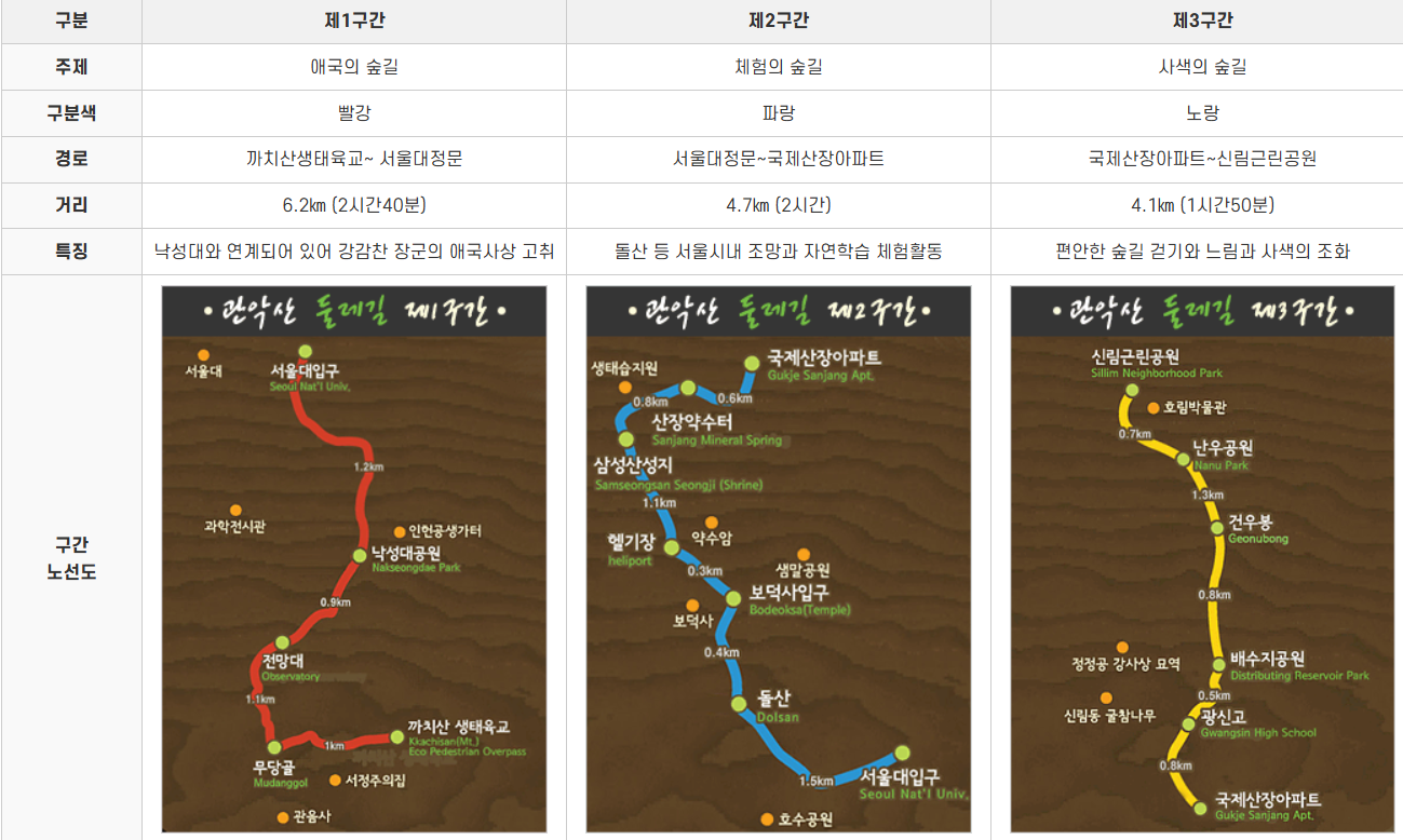 서울, 과천, 안양 세 도시에 걸쳐 있는 관악산의 아름다움을 만끽하고 싶다면 관악산 둘레길을 추천합니다. 관악산 둘레길은 험준한 산 정상 대신 완만한 경사와 평지를 따라 조성되어 있어 남녀노소 누구나 편안하게 관악산의 수려한 자연과 생태 경관을 감상할 수 있는 자연탐방로입니다.