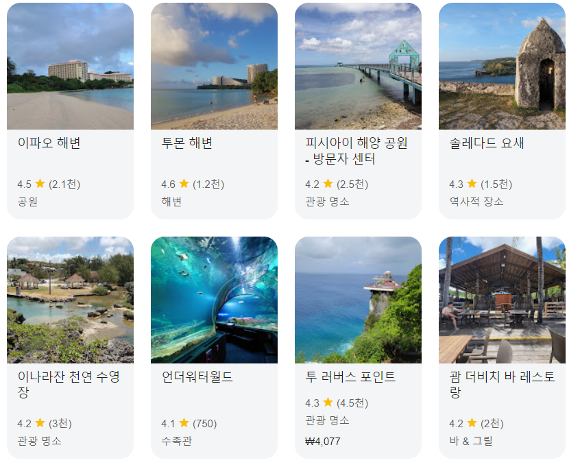 괌에는 한국어 지원 서비스를 제공하는 호텔, 레스토랑, 쇼핑센터 등이 많아 편리하게 여행을 즐길 수 있습니다.