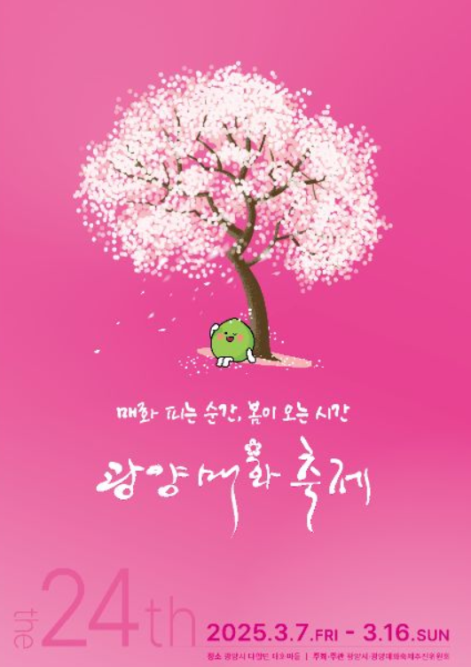 2025년 3월 7일부터 16일까지 진행되는 이번 축제는 '한국의 봄, 광양매화마을에서 열다'라는 주제와 '매화 피는 순간, 봄이 오는 시간'이라는 슬로건 아래, 매력적이고 차별화된 콘텐츠로 관람객을 맞이할 준비를 하고 있습니다.