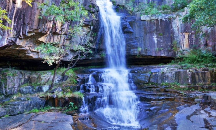 조령삼관문에서 소조령으로 흘러내리는 물줄기가 20m 높이의 절벽 아래로 떨어지며 3단의 폭포를 이루는 장관을 연출합니다.