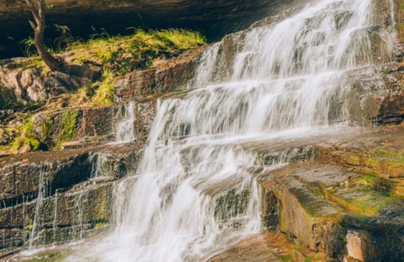 조령삼관문에서 소조령으로 흘러내리는 물줄기가 20m 높이의 절벽 아래로 떨어지며 3단의 폭포를 이루는 장관을 연출합니다.