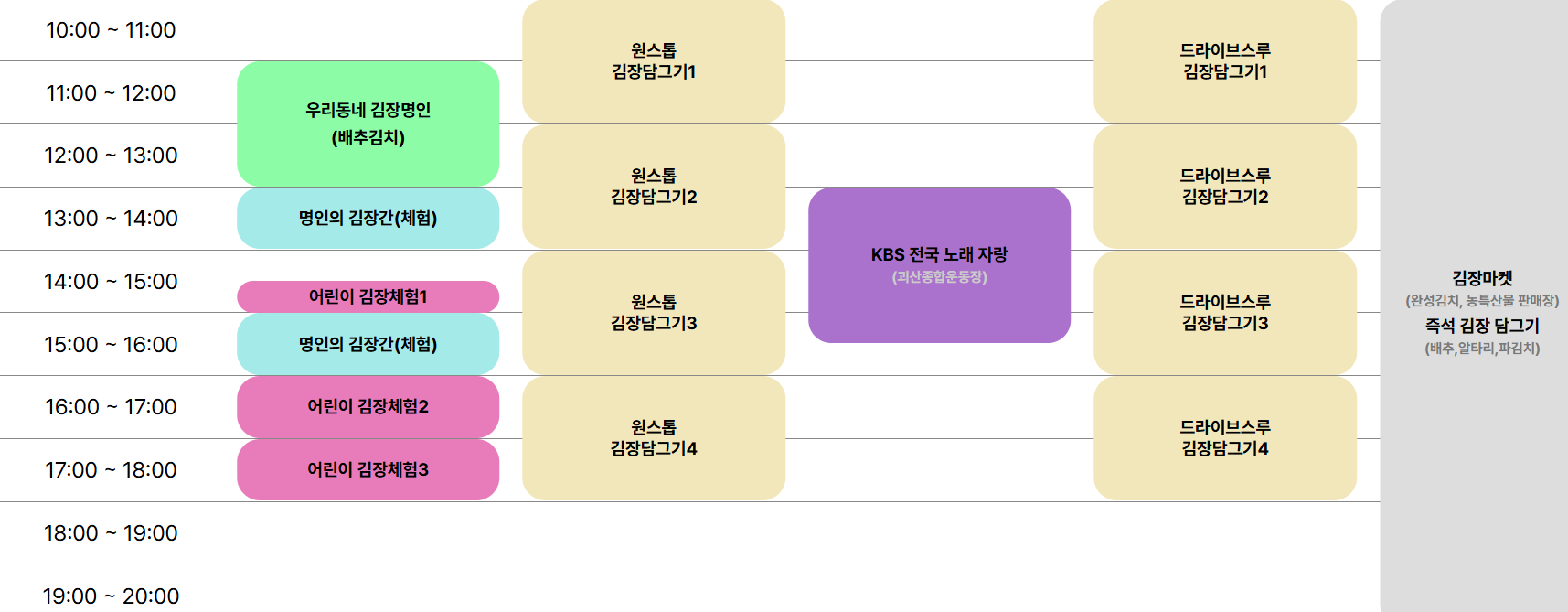 괴산 김장축제의 메인 이벤트인 '원스톱 김장담그기'와 '드라이브스루 김장체험'은 700팀 한정으로 진행되었는데, 22일 사전 예약이 모두 마감되었다고 합니다.