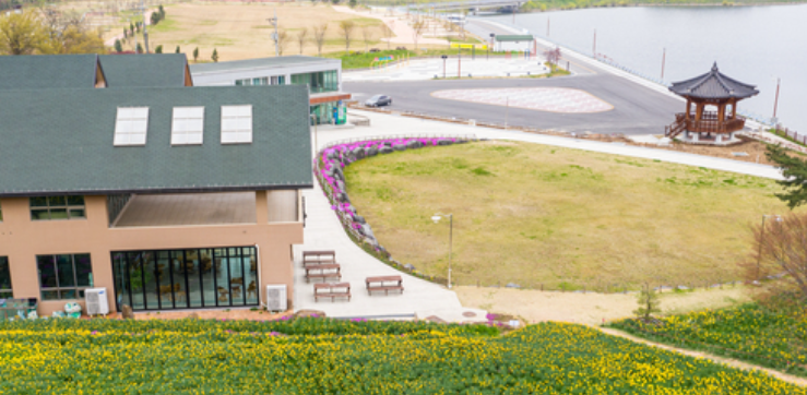호수 주변으로 푸른 잔디밭과 울창한 숲이 조성되어 있어 자연 속에서 휴식을 취하기에 더할 나위 없이 좋은 곳입니다. 호수를 따라 조성된 산책로와 데크는 여유롭게 거닐며 아름다운 호수 풍경을 감상하기에 좋습니다.