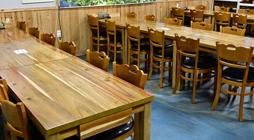 식당 건너편에는 벚나무가 시원한 그늘을 만들어주고, 2층에서는 섬진강의 멋진 풍경을 감상하며 식사할 수 있습니다.