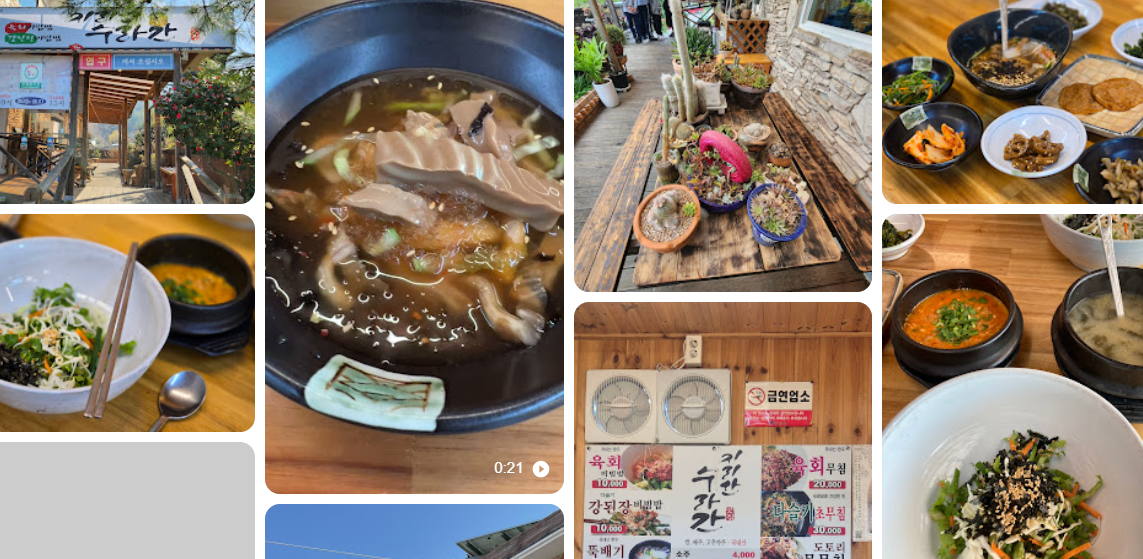 전라남도 구례군 마산면 화엄사로에 자리 잡은 ‘지리산 수라간’은 자연의 향취를 그대로 느낄 수 있는 특별한 맛집입니다. 가게 입구에 들어서면 마치 작은 정원에 온 듯 다채로운 다육식물이 손님을 맞이하며, 내부로 들어서면 편백나무로 꾸며진 아늑하고 편안한 분위기가 식사를 더욱 즐겁게 합니다.