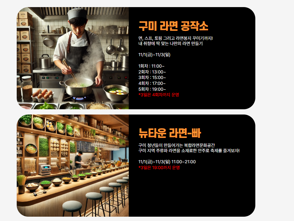 소개드린것처럼 이번에도 구미 라면축제는 입장료가 무료로 진행되며 누구나 자유롭게 방문할 수 있습니다. 이러한 점에서 많은 사람들이 부담 없이 참여할 수 있는 좋은 기회가 될 것입니다.