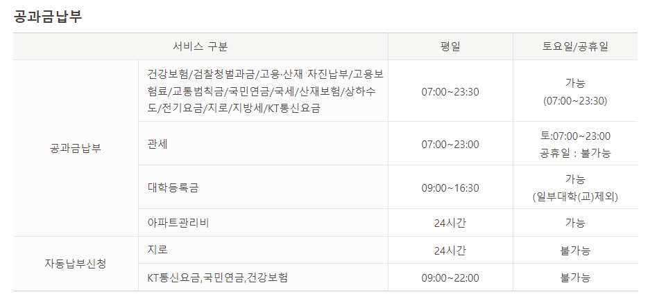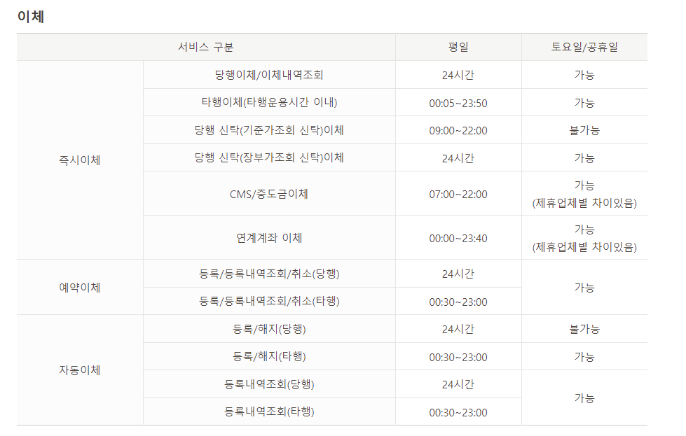 또한 매월 셋째주 일요일의 경우 국민은행 시스템조정작업으로 인하여 일부만 서비스만 시행이 되기 때문에 이 부분도 잘 체크해 두시기 바랍니다. 사진을 참고해 보시기 바랍니다.