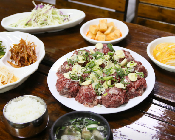 완주옥은 중앙동에 오랜 시간 자리하며 한우떡갈비로 군산을 대표하는 노포로 손꼽힙니다. 이곳의 떡갈비는 한우로만 만들어 육즙이 풍부하고 결이 고와 부드러운 식감을 자랑합니다. 불향이 은은하게 밸 수 있도록 조리 시간이 조절되어 있어 먹는 순간 고기의 풍미가 확 퍼지는 것이 특징입니다.
