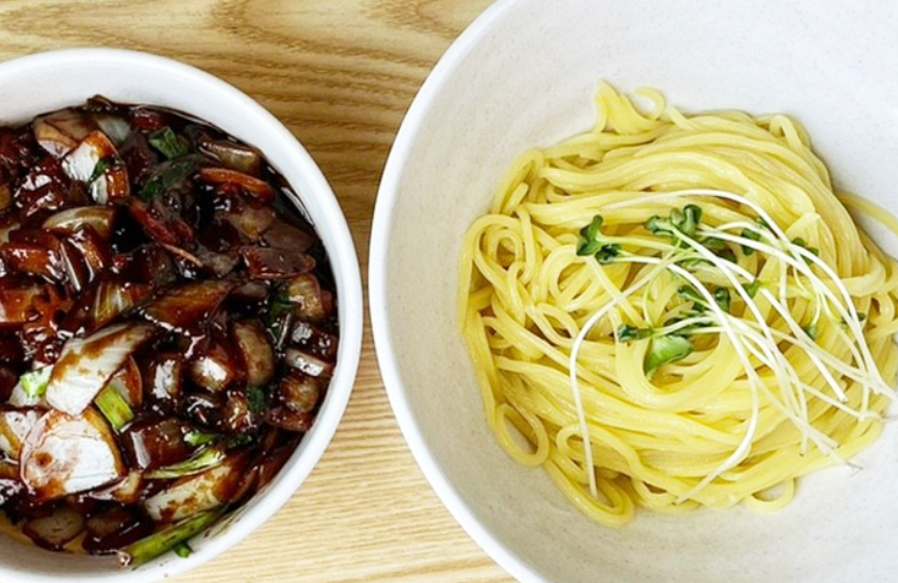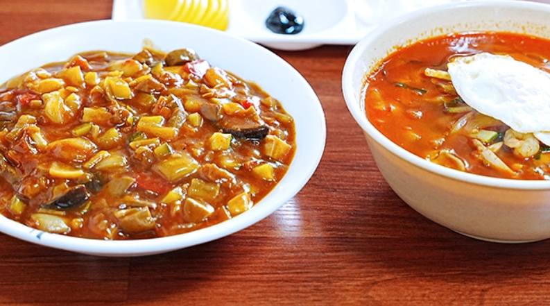 고추장처럼 빨간 색깔을 띠고 있지만 맵지 않고 달짝지근한 맛이 특징입니다. 걸쭉한 소스에 면을 섞어 먹으면 그 독특한 맛에 매료될 것입니다.