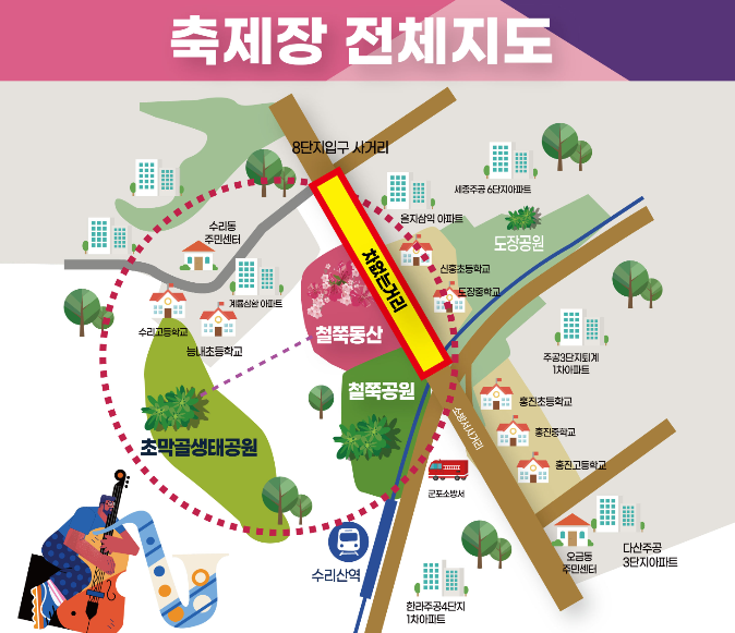 청소년 어울림마당, 초막골 라이브 음악 공연, 그리고 꿈의 오케스트라 공연을 비롯해 차 없는 거리에서의 거리 공연 등 다채로운 공연을 즐길 수 있을 것입니다.