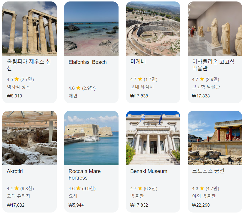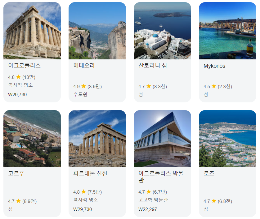 그리스는 한국인들에게 꾸준히 인기 있는 여행지로서 특히 아름다운 섬들과 고대 유적지, 맛있는 음식 등 다양한 매력을 가지고 있습니다.