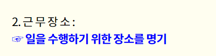 두번째는 근로 장소입니다. 예를 들어서 서울시 일산동구 근로글로벌 본사 마케팅팀 이라고 명시할 수 있습니다.
