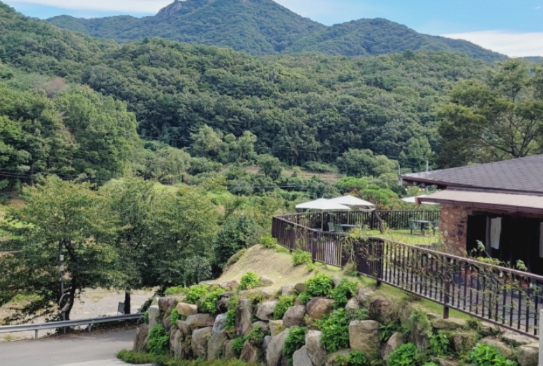 본관의 모든 좌석과 테라스에서 멋진 산 전망을 감상할 수 있습니다. 별관에는 5개의 좌식 개별룸과 30인 이상 수용 가능한 테이블룸이 마련되어 있어 모임 장소로도 좋습니다.