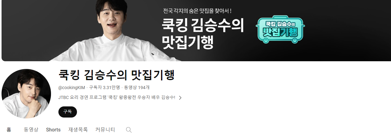 김승수는 요리에도 재능이 많습니다. 쿡킹 김승수의 맛집기행이라는 유튜브를 운영중이기도 합니다.