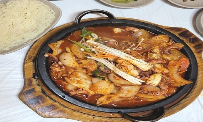 이곳의 대표 메뉴는 낙지볶음입니다. 매콤한 양념에 쫄깃한 낙지가 어우러져 밥도둑이 따로 없습니다. 낙지볶음에는 소면 사리가 기본으로 제공되어 더욱 푸짐하게 즐길 수 있습니다.