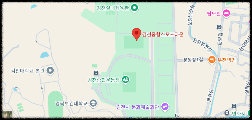 혹시 자가용을 이용하실 경우, 김천종합스포츠타운 주차장 외에도 인근 공영주차장이나 임시 주차장을 활용하실 수 있습니다.