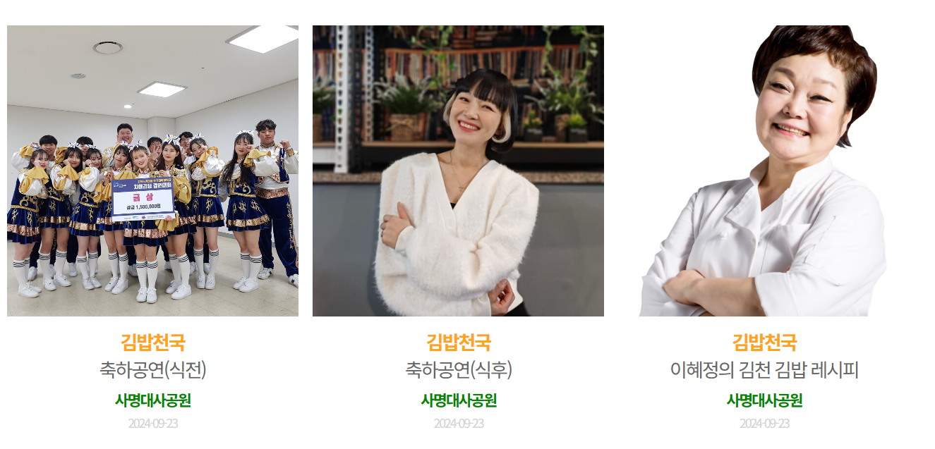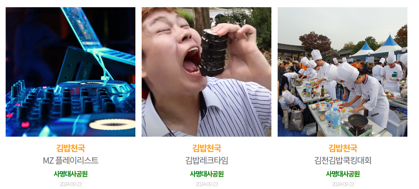 이번 김천김밥축제는 단순히 김밥을 먹고 즐기는 것이 아니라, 김밥에 담긴 추억과 김천의 따뜻한 정서를 함께 느낄 수 있는 소중한 시간이 될 것입니다.