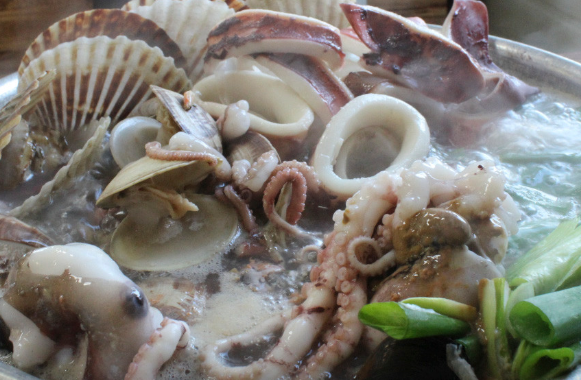 9번 박승광해물칼국수는 장기동에 본점을 둔 해물 칼국수 전문점으로 냄비가 넘칠 듯 담겨 나오는 해산물의 양에 압도당하게 됩니다. 오징어와 낙지 그리고 전복과 가리비 등 신선한 해산물을 먼저 건져 먹은 뒤에 남은 진한 육수에 직접 제면한 칼국수 면을 넣어 끓여 먹는 순서로 진행됩니다.