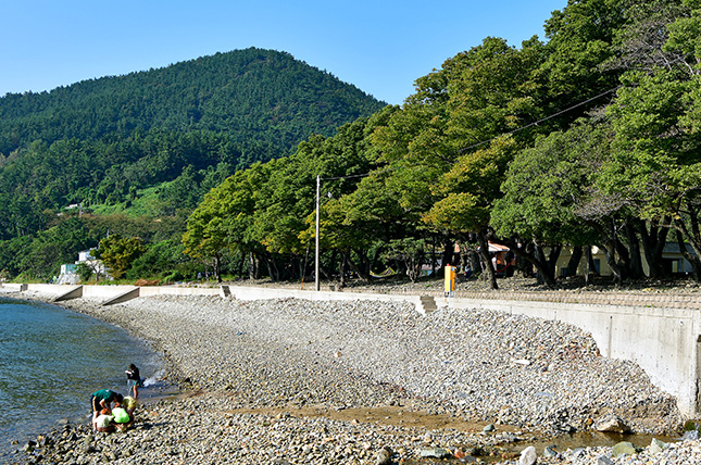 깨끗하고 투명한 바닷물은 보기만 해도 시원하며, 넓게 펼쳐진 몽돌밭은 조용하고 한적한 분위기 속에서 온전한 휴식을 취하기에 완벽한 장소를 제공합니다. 해변 뒤로는 울창한 소나무 숲이 시원한 그늘을 드리워, 뜨거운 여름철에도 시원하게 휴식을 즐길 수 있습니다.