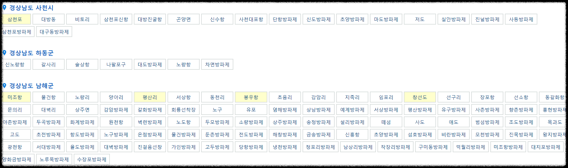이 사이트에서는 남해뿐만 아니라 전국의 물때표를 확인할 수 있습니다. 사용 방법은 간단합니다.