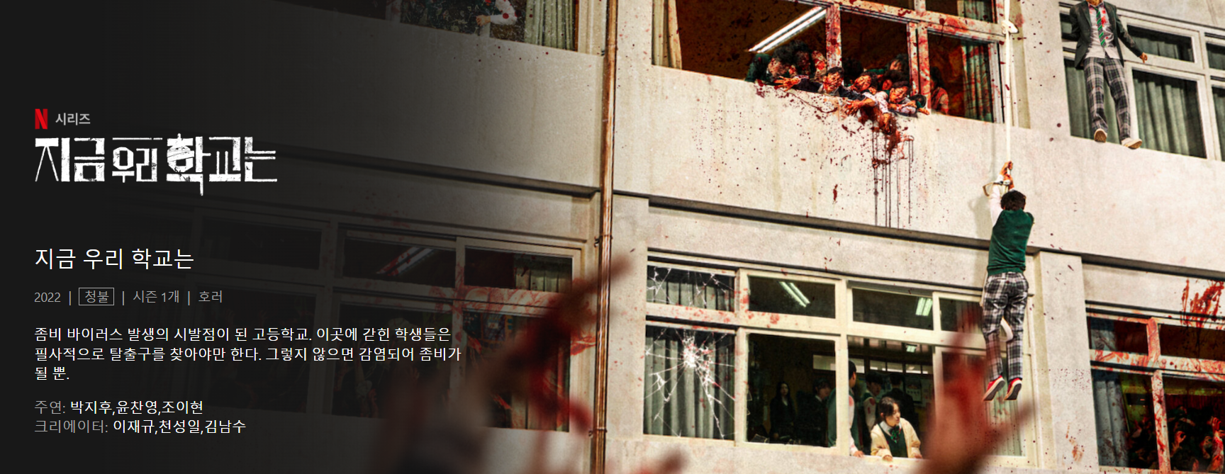 많은 분들이 아시겠지만 이미 전세계에서 호평을 받고 인기를 얻은 드라마입니다. 스릴러 생존 드라마로서 현실을 잘 반영하면서도 재미가 있는 역대 최고 작품중 하나입니다.