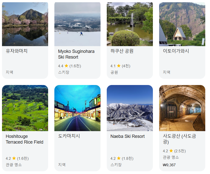 니가타현은 풍부한 자연환경과 다채로운 관광 명소를 자랑합니다. 겨울에는 스키와 온천을 즐기기 위해 많은 한국인들이 니가타를 찾습니다.