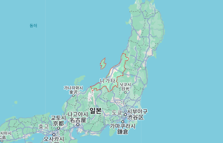 니가타현은 일본 혼슈 중북부에 위치하며 동해를 따라 남북으로 길게 뻗어있는 현입니다. 47개 도도부현 중 5번째로 넓지만, 험준한 산맥과 동해 사이에 끼어있는 좁은 평야 지대에 인구가 집중되어 있습니다.