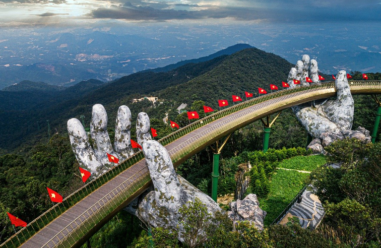 놀이시설이 잘 갖추어져 있으며 특히 케이블카의 인기가 높습니다. 그리고 바나 힐 내 자리한 다리인 골든브릿지가 유명합니다.