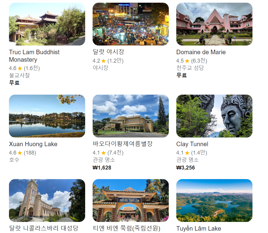 달랏은 다양한 매력을 가진 도시로, 누구나 만족할 만한 여행 경험을 선사합니다. 아름다운 자연과 독특한 건축물, 다양한 액티비티, 맛있는 음식까지, 달랏에서 잊지 못할 추억을 만들어 보시기 바랍니다.