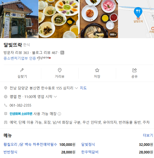 2. 달빛뜨락 – 자연과 건강이 함께하는 슬로푸드 한상 담양의 들녘이 한눈에 내려다보이는 언덕 위에 자리한 달빛뜨락은 ‘건강한 밥상’의 가치를 실천하는 곳입니다. 한식대첩3 준우승으로 이름을 알린 주인장이 운영하며, 식약처 저염음식점·전라남도 친환경음식점으로 지정된 믿을 수 있는 맛집입니다.